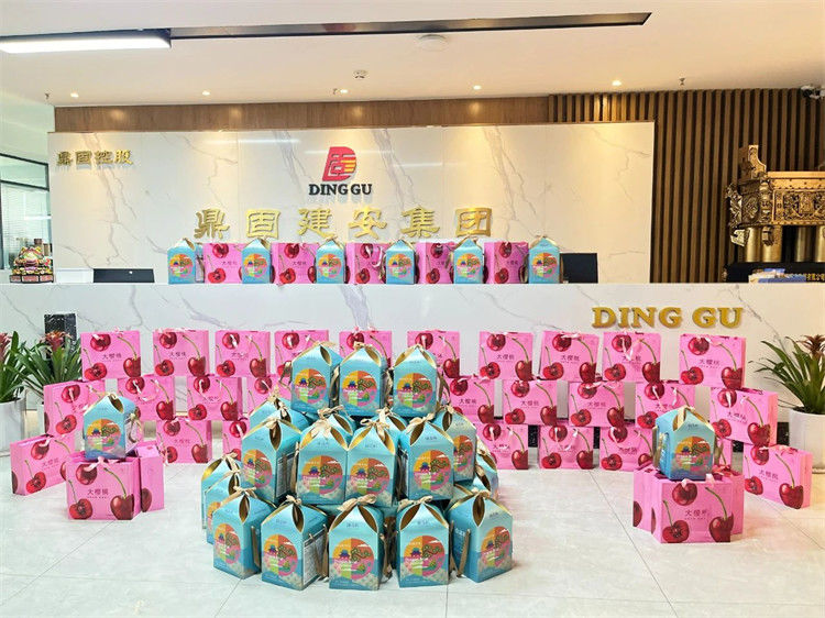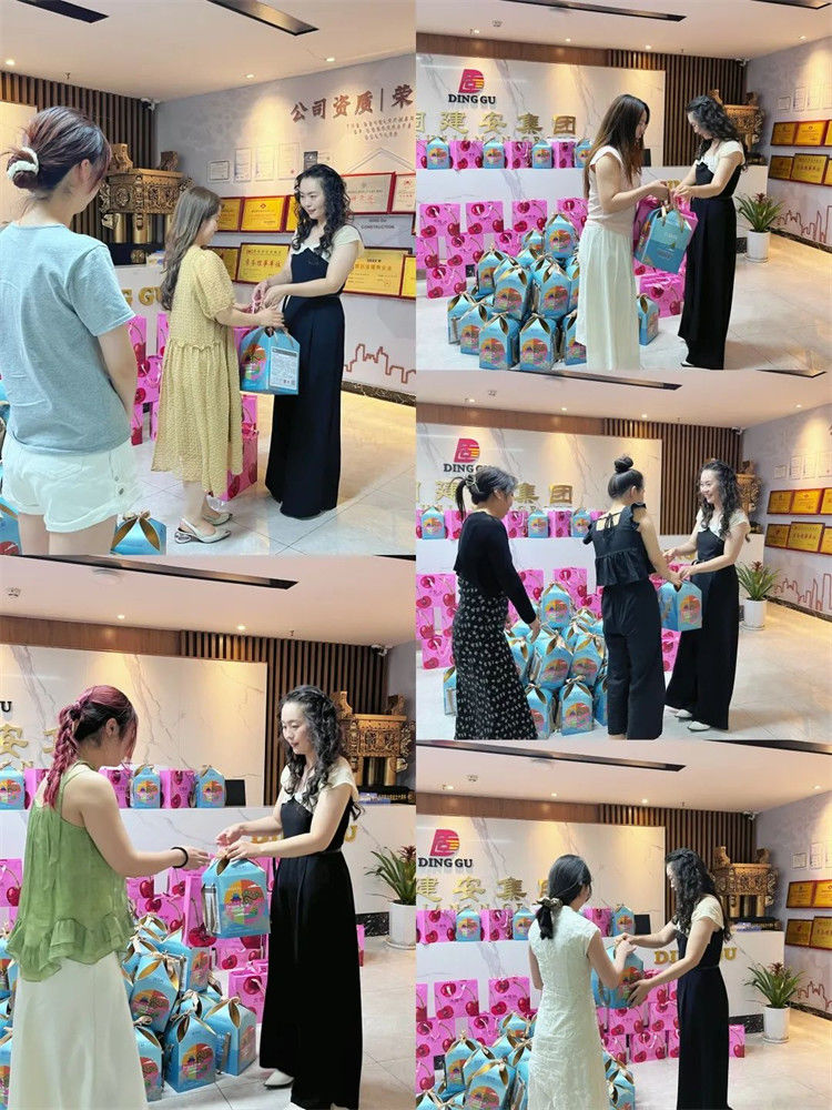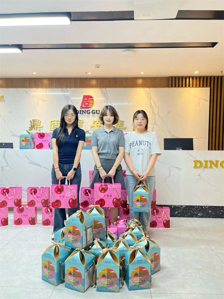 在端午佳节来临之际,鼎固建安集团有限公司为每一位辛勤耕耘的员工,精心准备了充满心意的节日福利。福利发放现场布置得温馨又喜庆,印有端午元素的粽子礼盒摆满桌子成了一道亮丽的风景线。一盒盒粽子礼盒、樱桃礼盒整齐摆放,每一份福利都经过精挑细选,饱含着公司对员工的满满关怀。